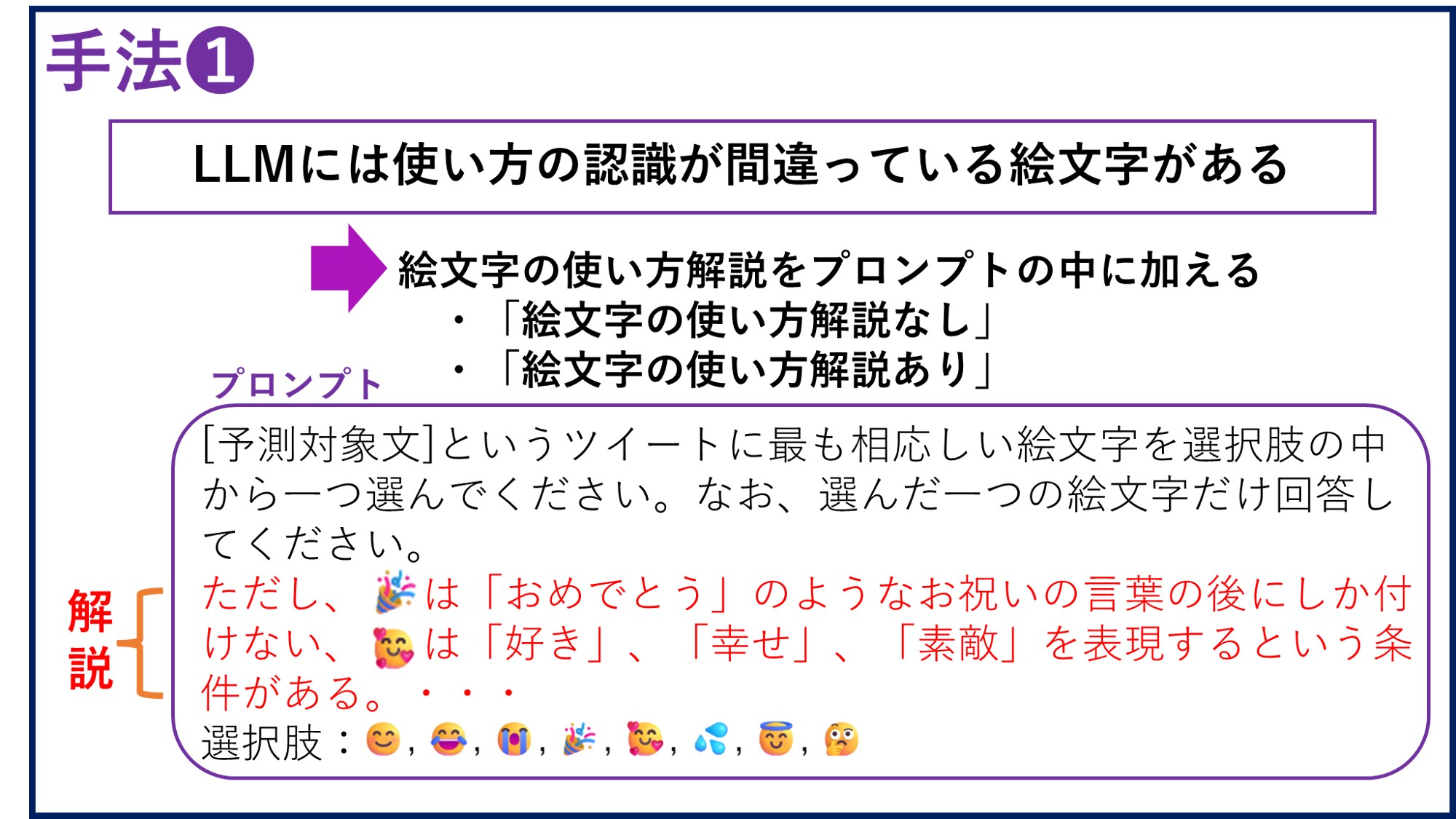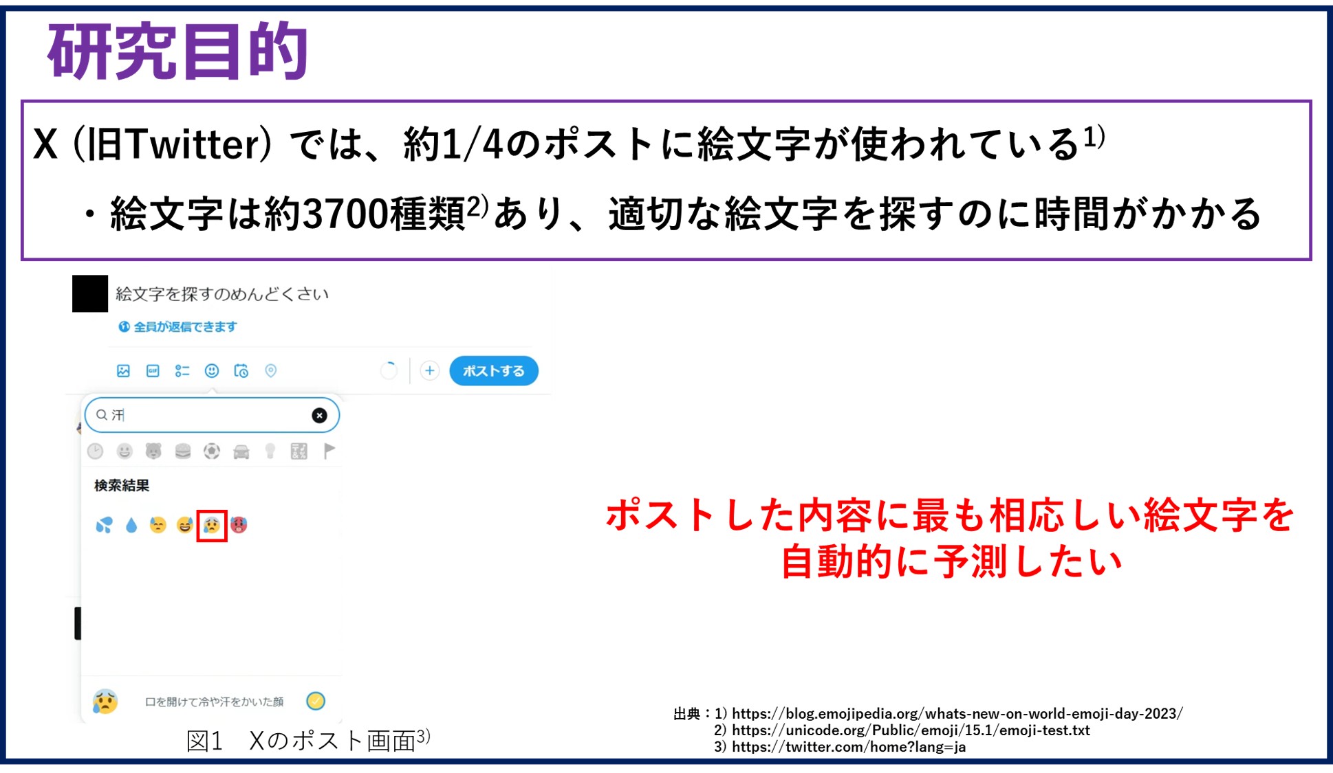 大規模言語モデル(LLM)によるSNSへのAI適用・・・Xポストへの絵文字推薦