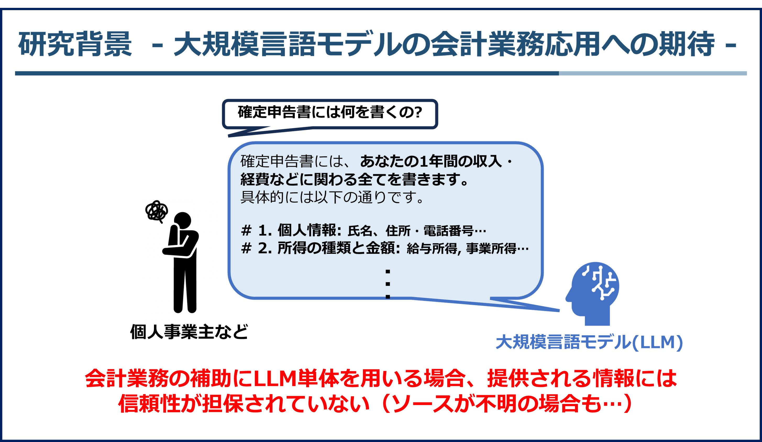 大規模言語モデル(LLM)による高度な対話・・・会計業務に関するチャットボット