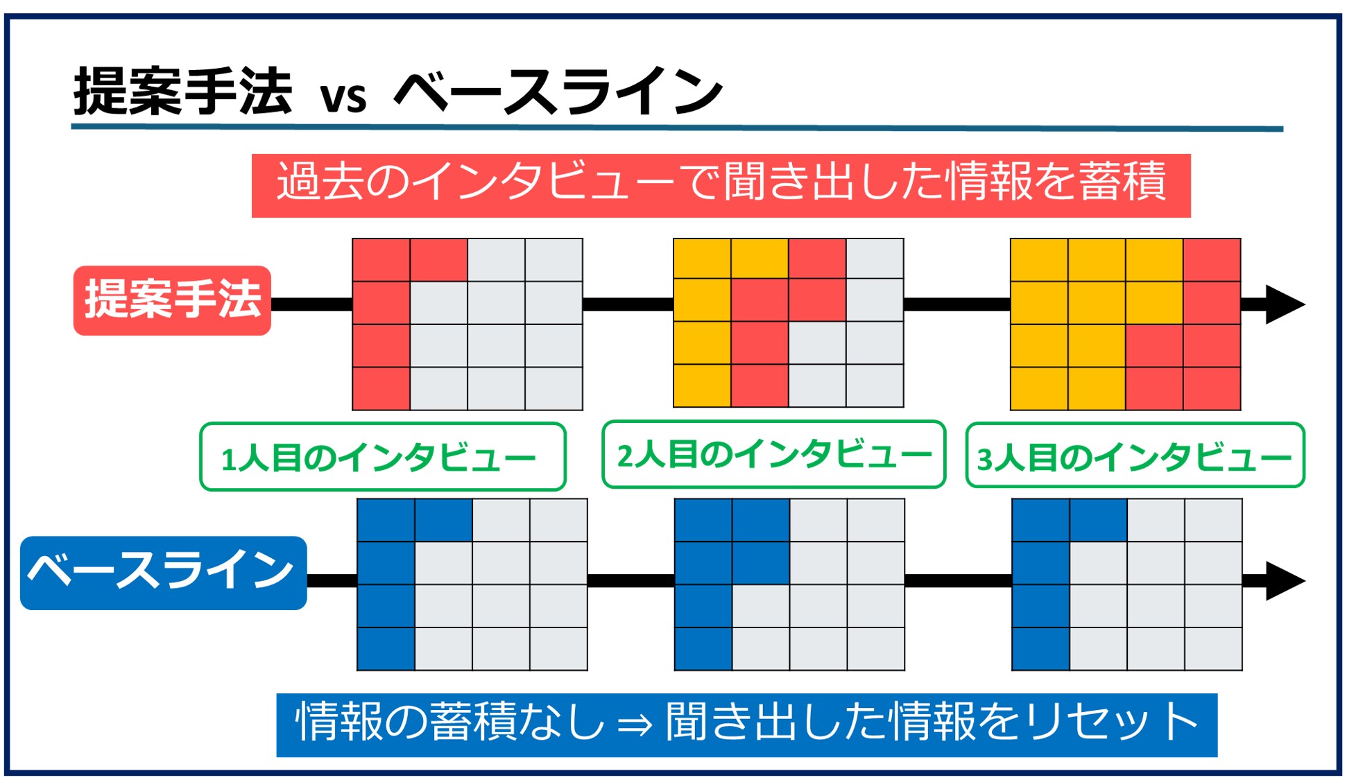 インタビュー対話を通して質問事項を動的に深堀りする機能を実現します.